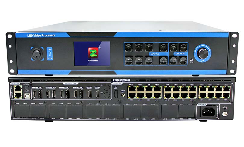 ZH-Z24 4K二合一視頻處理器是中航軟件為滿足LED大屏安裝方便精心打造的一款產(chǎn)品。支持HDMI、DP等高清信號(hào)六畫面任意漫游輸入;最大可接收4096*2160@60Hz像素的高清數(shù)字信號(hào),支持24路千兆網(wǎng)口輸出,單機(jī)帶載支持最寬16384像素,或最高8192像素的大屏。采用全新通信架構(gòu),高刷新、高亮度、全新灰度掃描引擎,納秒級(jí)同步,惡劣通信狀態(tài)仍能保持通信順暢,讓廣大用戶感受更多彩、更美好的LED世界!