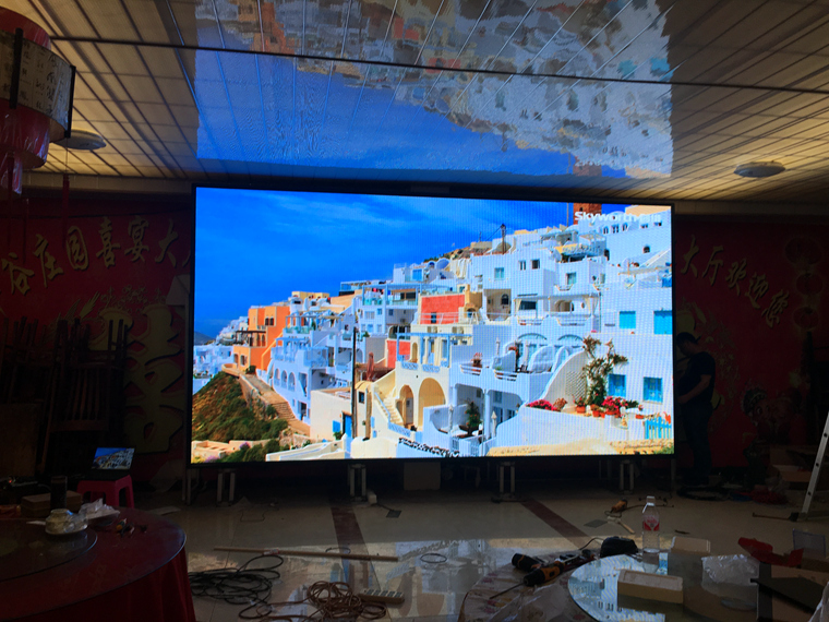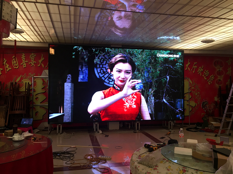 山東省齊河縣豐谷莊園喜宴大廳,室內(nèi)p5,總點(diǎn)數(shù)960×512,單卡帶載點(diǎn)數(shù)192×256,十張接收卡,一張發(fā)送卡完美帶載!
