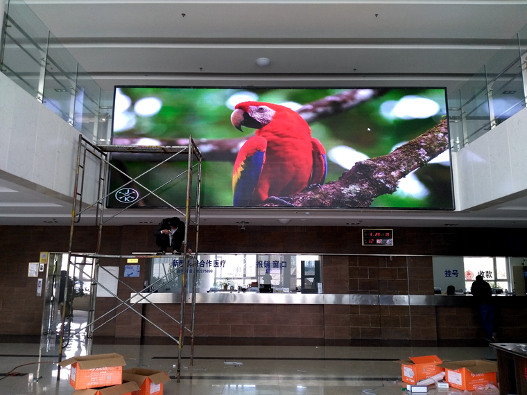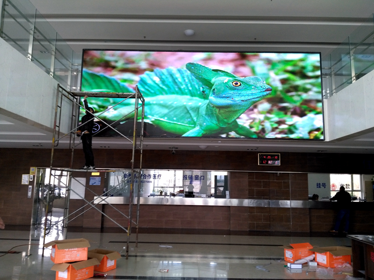 吉林省某縣醫(yī)院?jiǎn)挝?/span>,戶(hù)內(nèi)P4 單卡帶載320*256(高*寬)時(shí)效果,一張發(fā)送卡14張接收卡完美帶載!