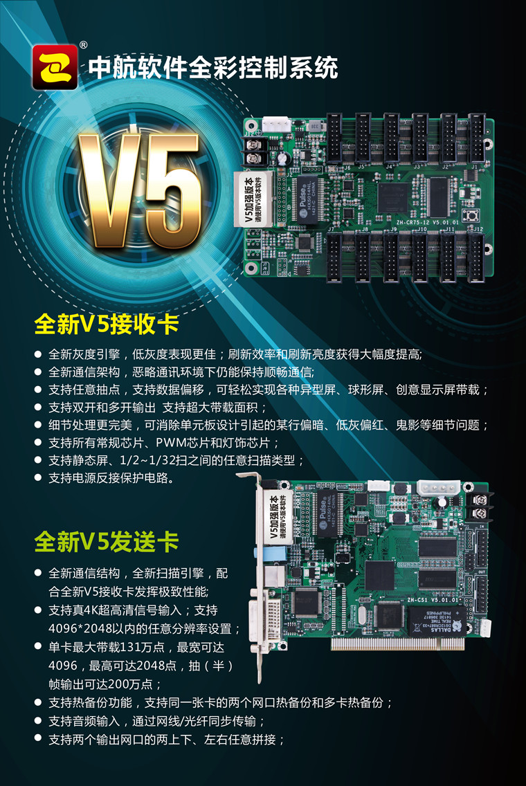 中航全彩控制系統(tǒng)V5加強(qiáng)版工程案例:無(wú)錫華萊塢p6高清全彩,一張發(fā)送卡,24張接收卡,單卡帶載192*256。中航全新V5控制系統(tǒng),搭載全新灰度掃描引擎!全新通信架構(gòu)!刷新效率,刷新亮度取得大幅度提高!我們一直在努力!我們會(huì)努力做的更好!